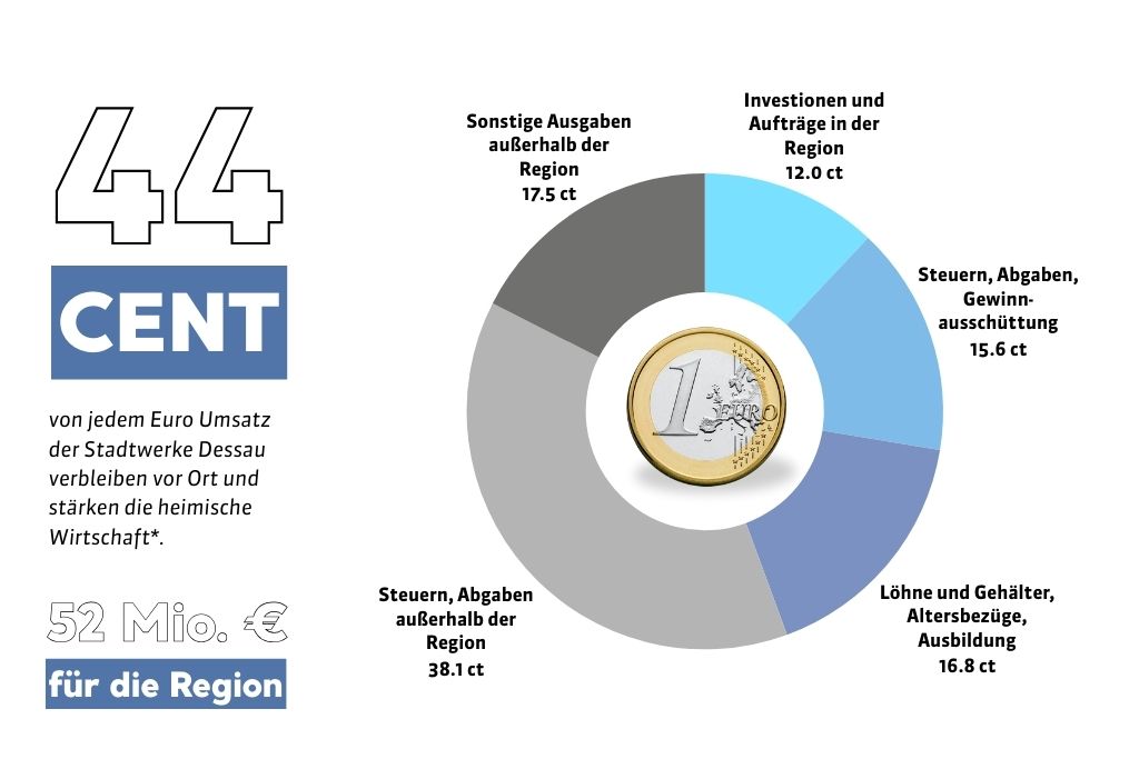 Ein großer Teil unserer Einnahmen fließt direkt zurück in die Region – etwa durch Konzessionsabgaben, an die Stadt ausgezahlte Dividenden und Gewerbesteuer, Investitionen in die Infrastruktur, Aufträge an lokale Unternehmen, sichere Arbeitsplätze sowie unser Engagement für Sport, Kultur und soziale Projekte. Gleichzeitig treiben wir die Energiewende vor Ort voran und übernehmen Verantwortung für eine nachhaltige Zukunft.