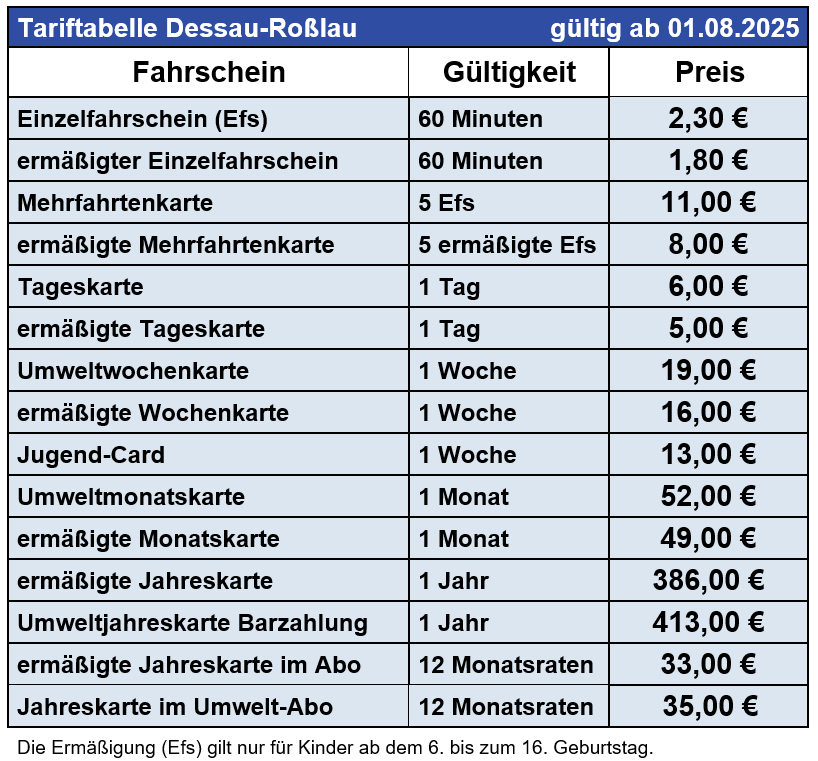 – Geltungsbereich: im gesamten Liniennetz der Dessauer Verkehrs GmbH